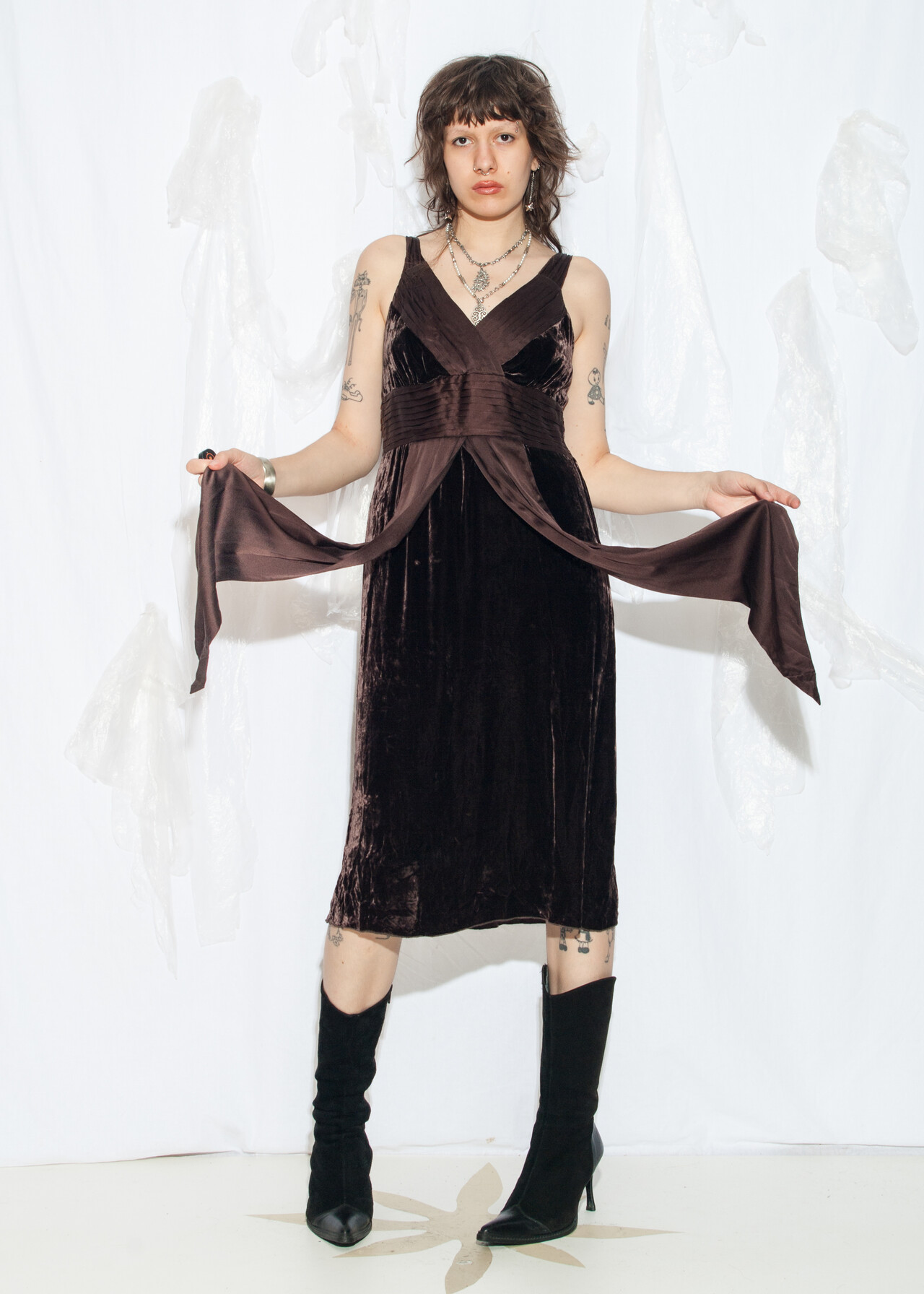 Be the first to review “Vintage Y2K Velvet Midi Dress in Brown” Cancel reply