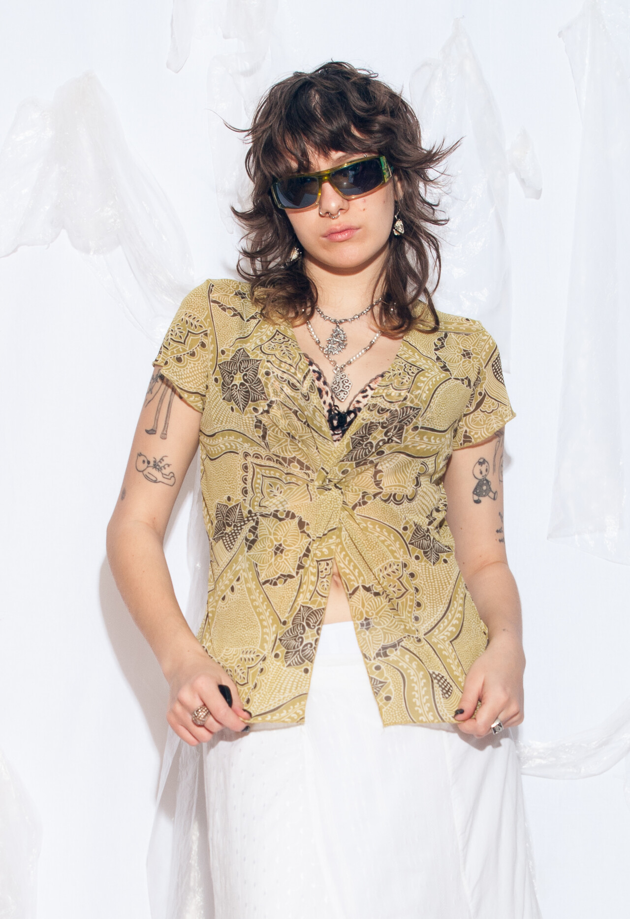 This Y2K vintage top is the ultimate green mesh wonder that makes you feel like a whimsigoth fairy ready to conquer the grunge kingdom of the 2000s.