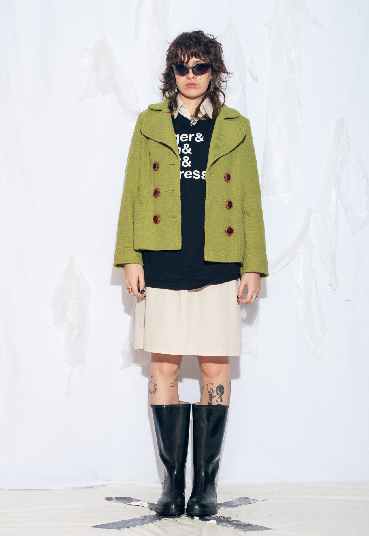 Tags: 2000s vintage style, double breasted coat, green wool coat, whimsi twee