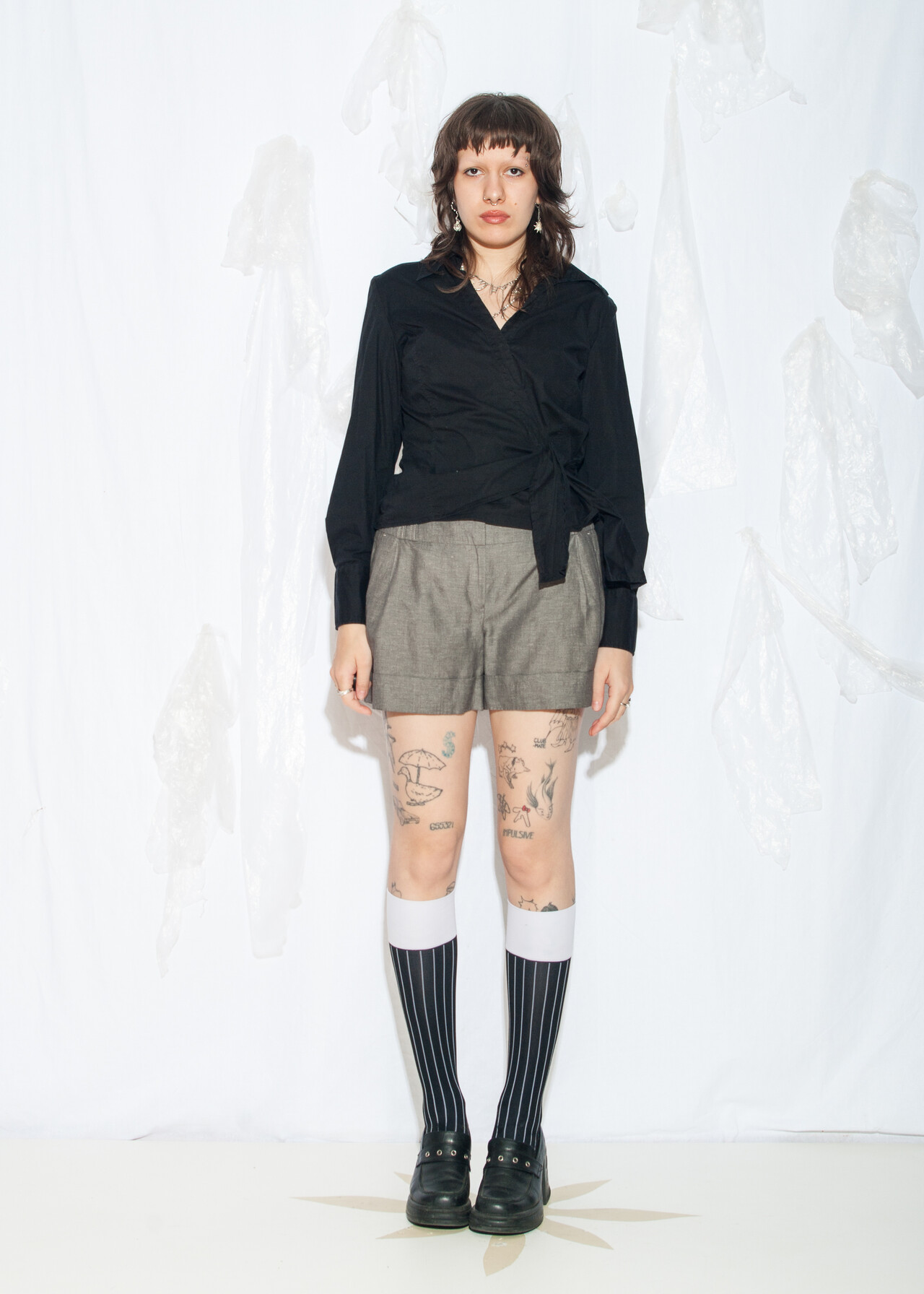 Be the first to review “Vintage Y2K Wrap Shirt in Black Cotton” Cancel reply