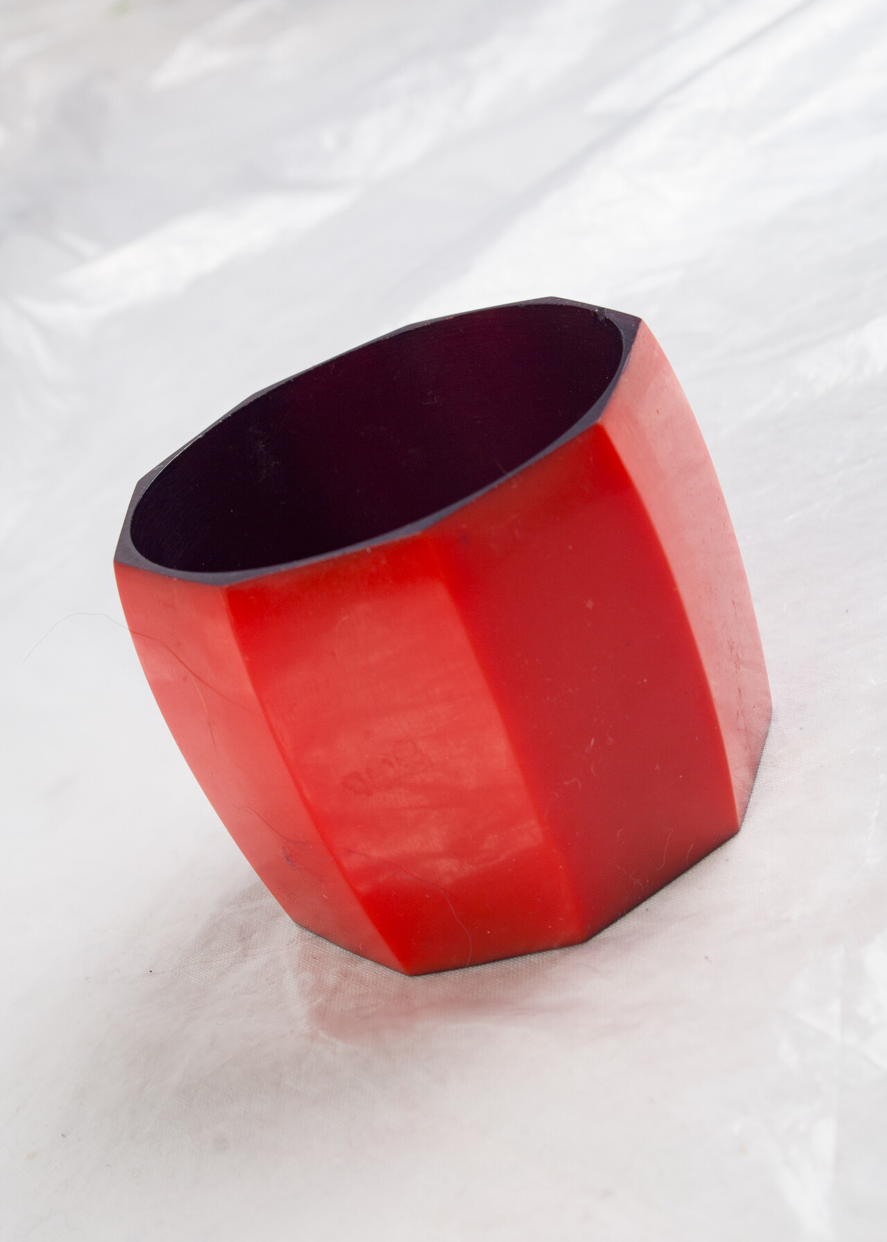 Tags: 80s vintage fashion, bold accessory, chunky bracelet, color block, European vintage, geometry bangle, glam style jewelry, minimalist look, plastic bangle